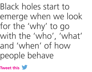 The black holes start to emerge when we look for the 'why' to go with the 'who', 'what' and 'when' of how people behave.